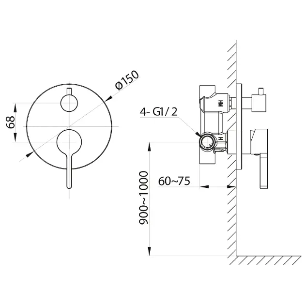 Grifo de bañera y ducha con palanca, con cuerpo color: cromo material:... Mostrar toda la descripción