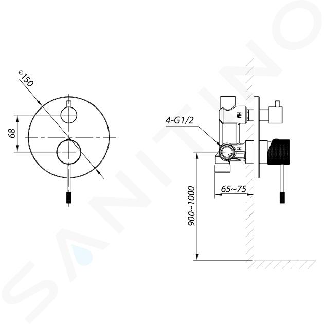 Grifería empotrada con cuerpo Color cromo material: latón diámetro 150... Mostrar toda la descripción