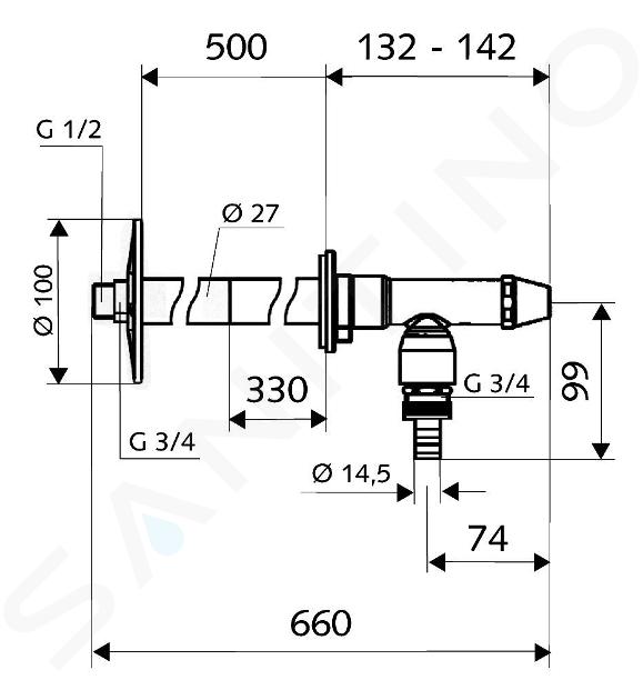 El set de instalación Schell Polar II incluye, además del pasamuros con asiento de válvula integrado, una manguera aislada, material de fijación y una tapa de montaje. El pasamuros puede instalarse durante la fase de obra gruesa. El asiento de la válvula es resistente a las heladas en muros con un grosor de 200 - 500 mm.